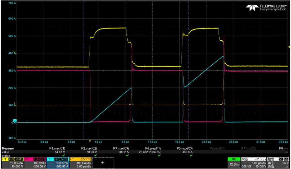 3、芯能自主研發(fā)的專(zhuān)用驅動(dòng)板■驅動(dòng)芯片滿(mǎn)足AEC-Q100標準4、開(kāi)關(guān)動(dòng)態(tài)測試波形展示